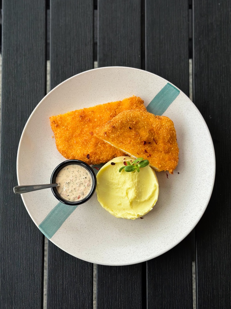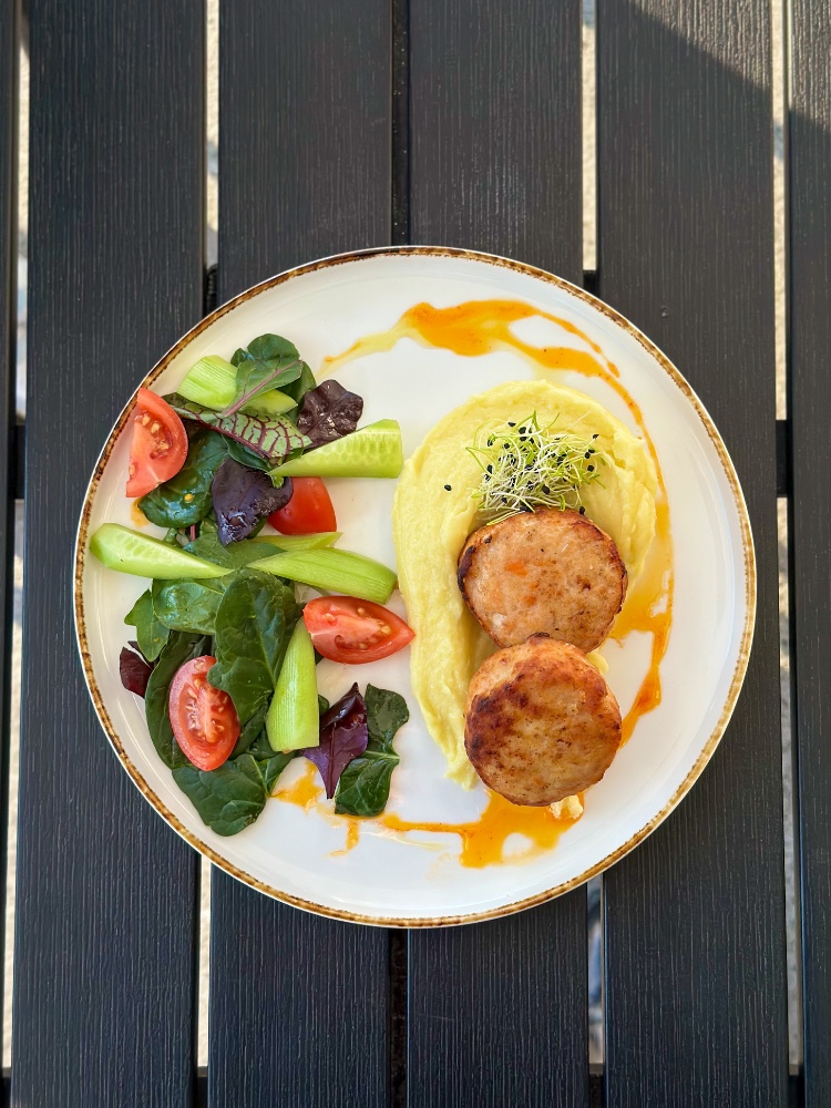 Котлети з судака та лосося з ніжним пюре та мікс-салатом