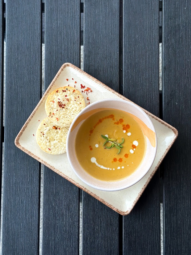 Крем-суп з червоної сочевиці з пармезан-крутонами