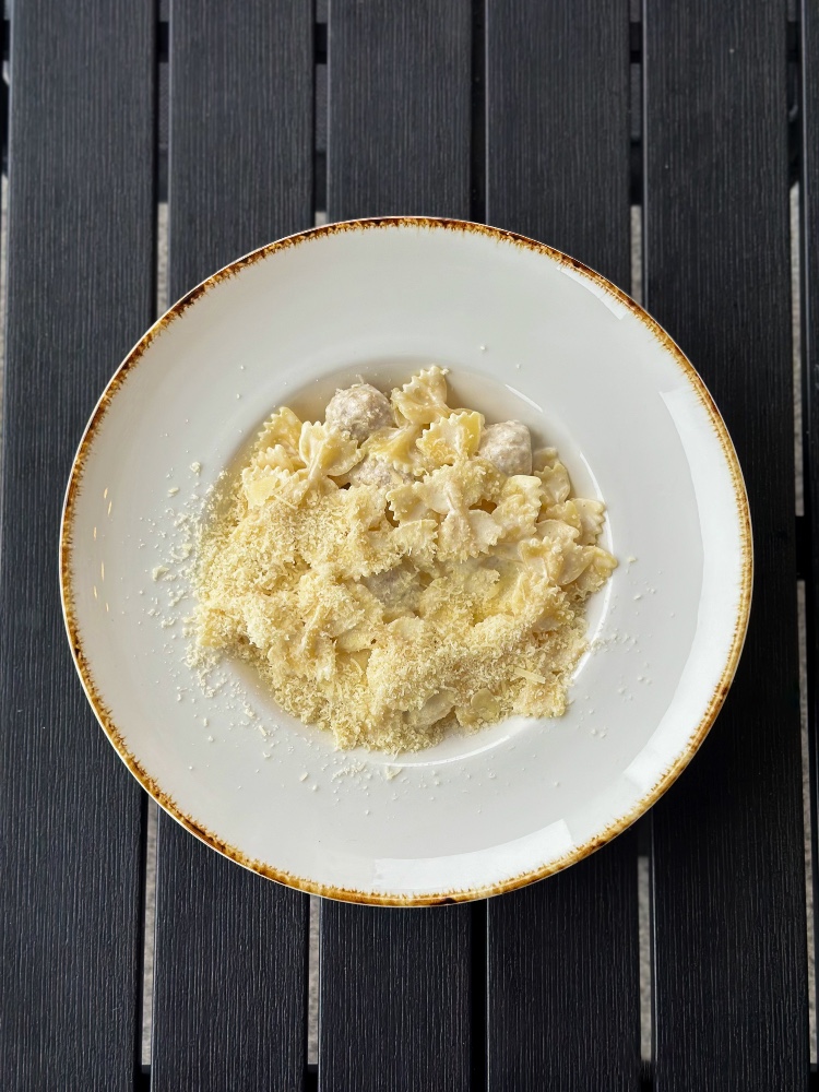 Бульон з фрикадельками, домашньою лапшою та м'яким яйцем.
